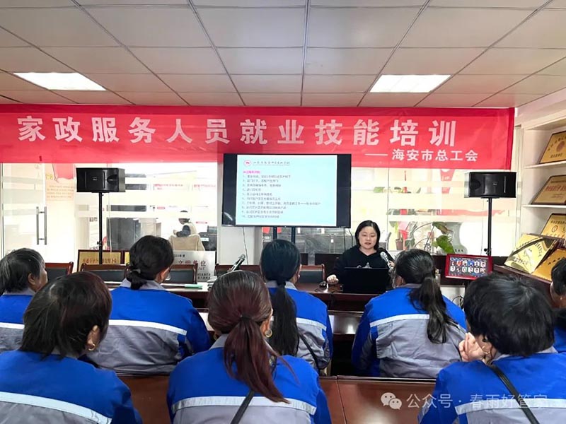 星空体育网官网登录入口于2024年11月8日,在海安市总工会和开发区总工会的支持下成功举办了“家政服务人员就业技能培训”活动。本次培训由海安市总工会主办,开发区总工会与星空体育网官网登录入口承办,授课教师来自海安中专,学员为公司在职保洁员和家政护理员。